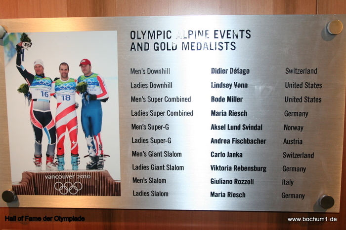 Eine Gedenktafel erinnert an alle Goldmedaillengewinner der