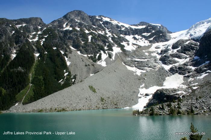 bedeckt. Wir umrundeten den See, um dem Joffres Glacier noch