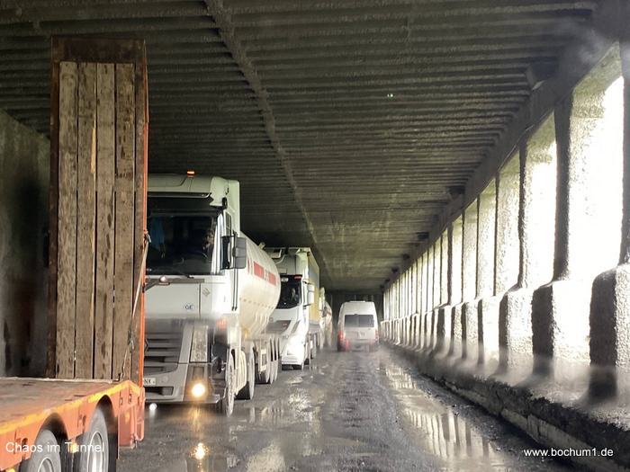 langer LKW-Stau, da ein Fahrzeug liegengeblieben war und alles bei