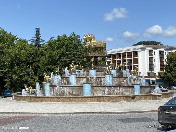 gerade die Buden vom Festival vom Vortag abbauten, zum Kolchis-Brunnen.