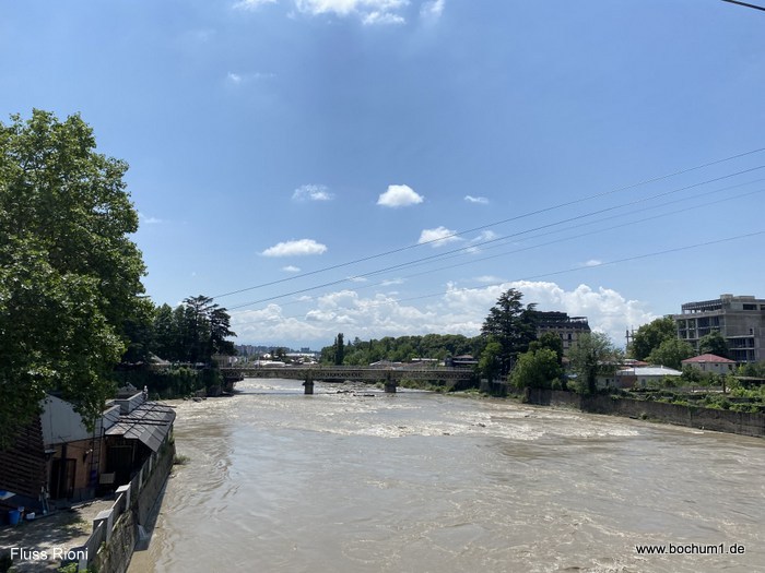 die Weiße Brücke über den Fluss Rioni, vorbei an den Handwerkern, welche