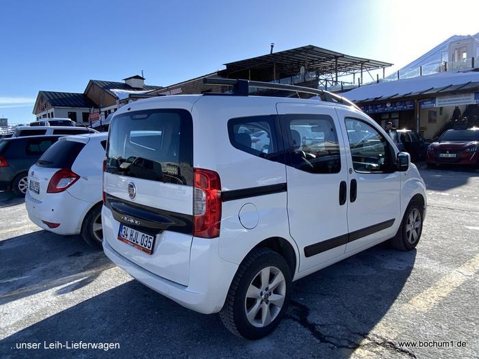 zusammen in ein Parkhaus, wo uns ein Fiat Lieferwagen übergeben wurde.