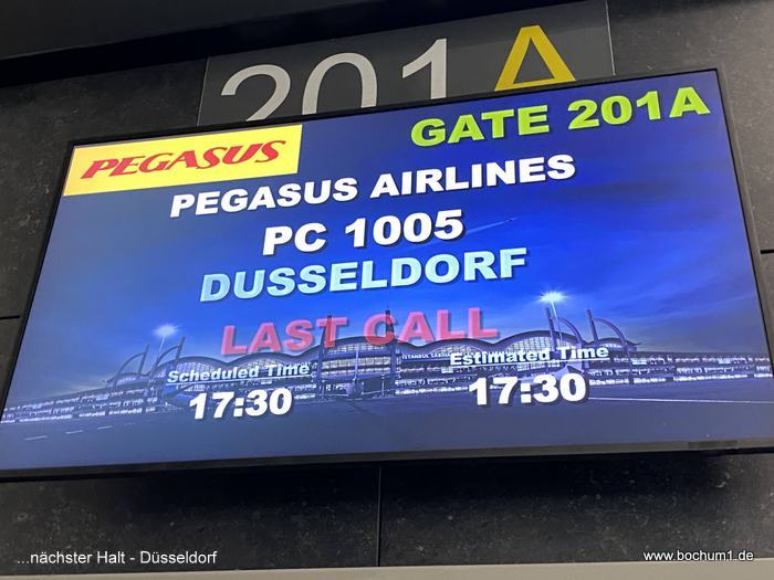der Pegasus-Schalter, wo wir als zweite Passagiere des Fluges unseren