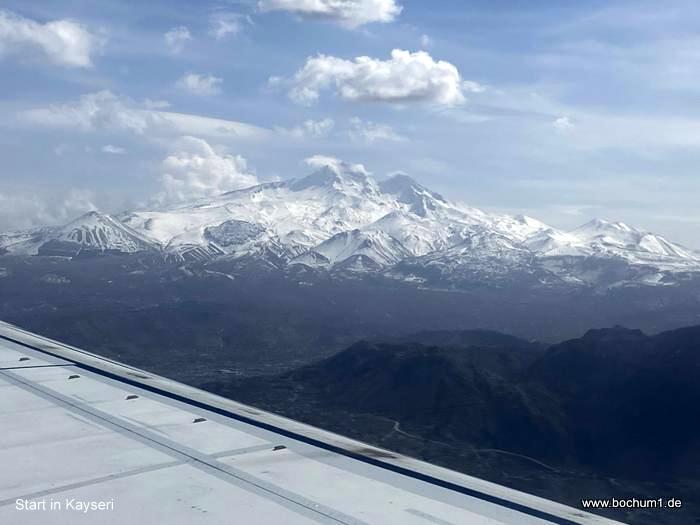 Skifahr-Berg Erciyes hatten. Die Flugzeit der gut gebuchten Boeing