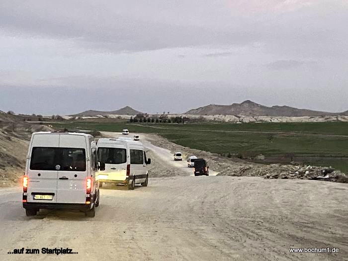 hielten die Kleinbusse mit den Hotelgästen, welche eine Ballonfahrt