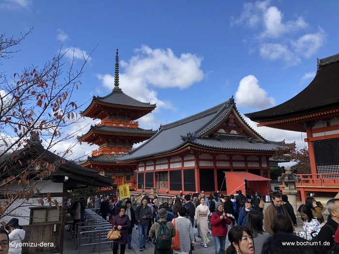 man direkt auf den Haupttempel Kiyomizu-dera zu, den man nach