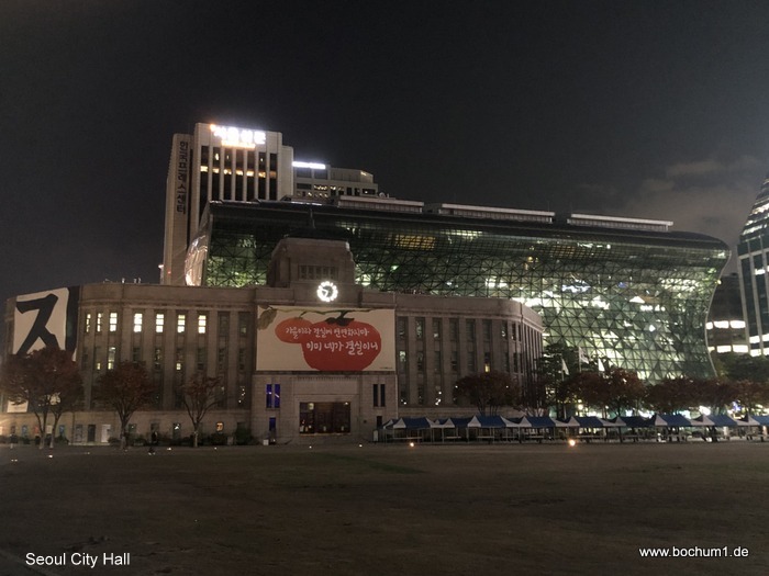 Spaziergang zur Seoul City Hall, wo das alte Rathaus, ein