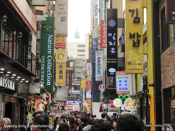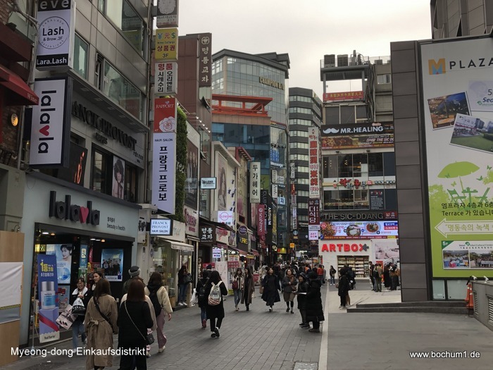 fuhren mit der U-Bahn zum Myeong-dong Einkaufsdistrikt. Dort waren