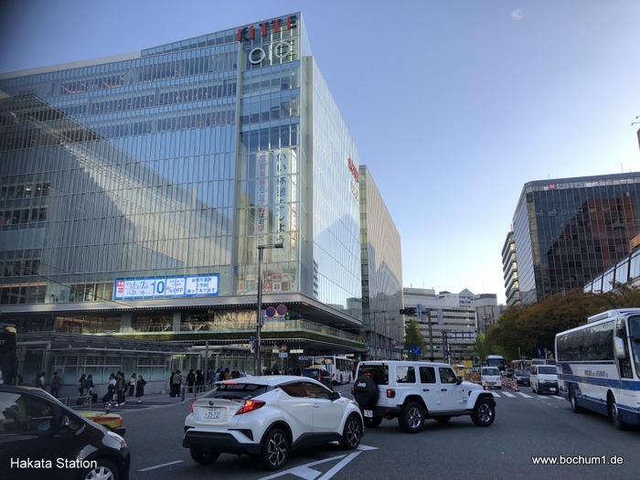 Straßenbahn und dem Shinkansen zurück nach Fukuoka. Im Bahnhof