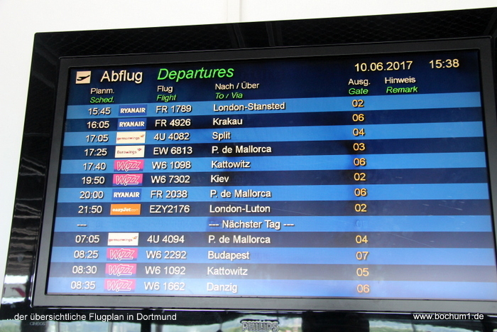 Entfernung des Wohnortes zum Flughafen, bevorzugt ab Dortmund und nicht