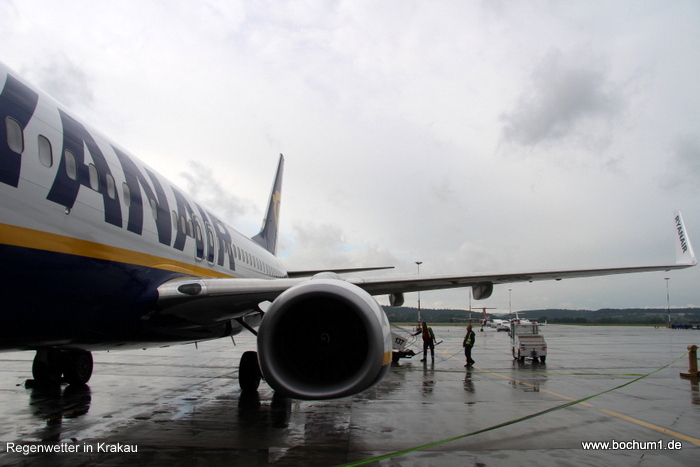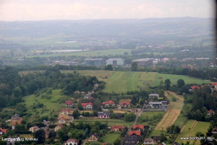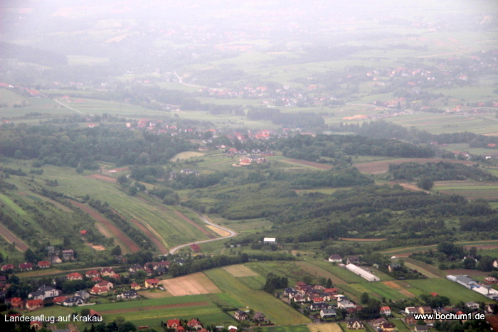 Std. 15 Min. Flugzeit bei Krakau durch eine dicke Wolkendecke flogen und