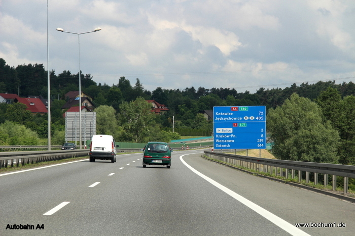 dann auf die mit 10 PLN mautpflichtige A4 in Richtung Katowice. Dafür