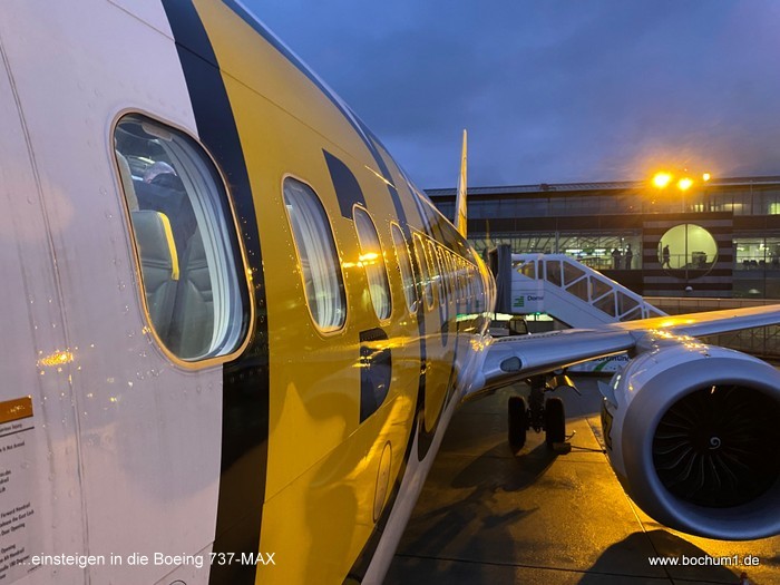 um 18:30 Uhr und mit der Boeing 737-MAX von Buzz