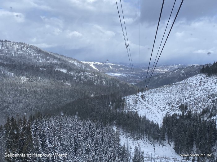 Von dort fuhren wir direkt zu einem Parkplatz nahe der Talstation Kasprowy Wierch, wo wir uns im Auto unsere Skisachen anzogen. |