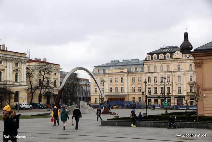 Krakow Glowny liefen. Auf dem Bahnhofsvorplatz war eine große