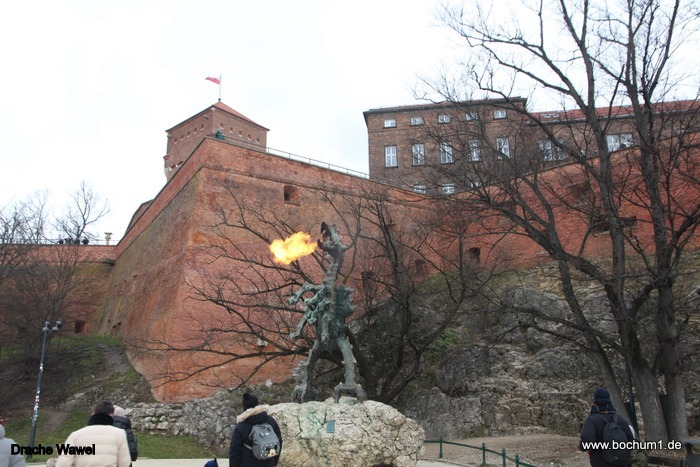 andere Uferseite, wo wir dem feuerspeienden Wawel-Drachen unterhalb der