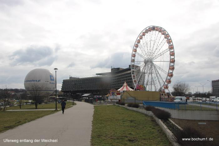 zum Ausblick auf den Fluss Weichsel und die Vororte südlich des