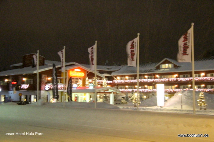 Hotel Hullu Poro in den Wintersportort Levi. Die Straßen waren komplett