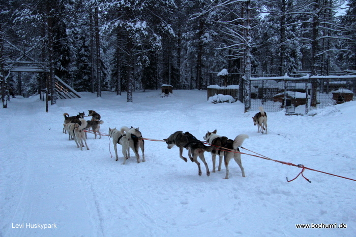 zum Levi Husky Park (Levin Huskypuisto). Vor dem Eingang warteten