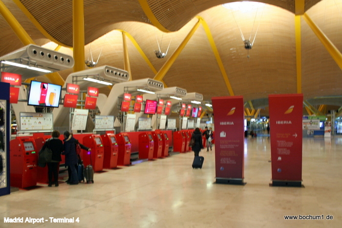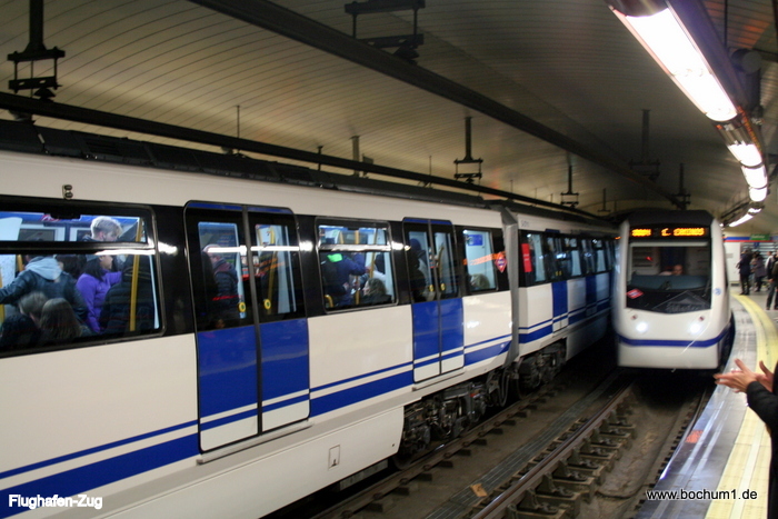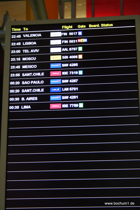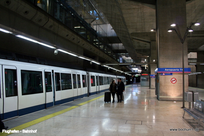 5 Haltestellen bis zum Madrid-Barajas Airport, wo wir nach 45 Min.