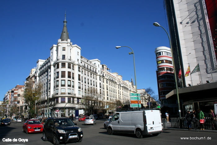 Calle de Alcalá. In den zahlreichen Seitenstraßen der Calle de Goya sind