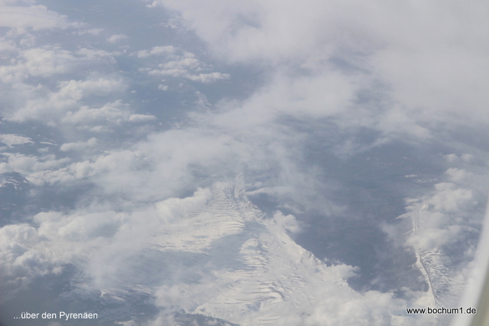 die westlichen Pyrenäen, dann über Madrid, bis wir nach 2 Std. 50 Min.