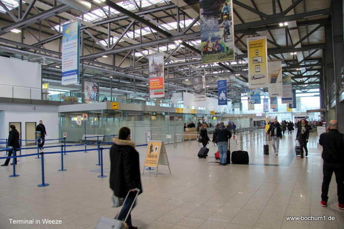 Flughafen gefahren und stellten uns an der für Weeze ungewöhnlich langen