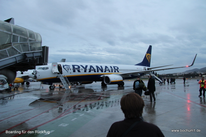 dunklen Abend 2 Std. 40 Min. zurück nach Weeze. Ein ereignisloser