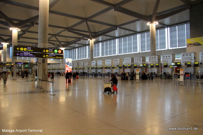 riesige, moderne Terminalgebäude an (bestimmt so groß wie Düsseldorf, da