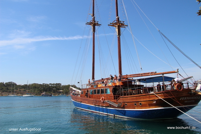 fuhr aus der Bucht heraus mit Kurs auf die kleine Insel Comino. Denn