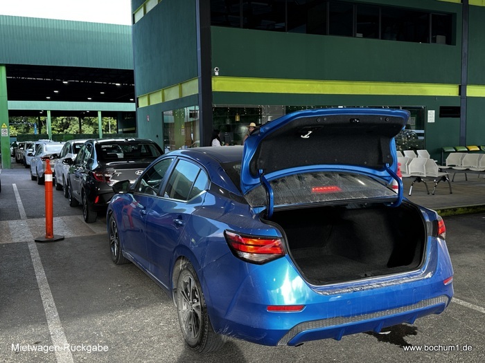 zum Flughafen, wo wir unseren Mietwagen bei Europcar abgaben. Eine