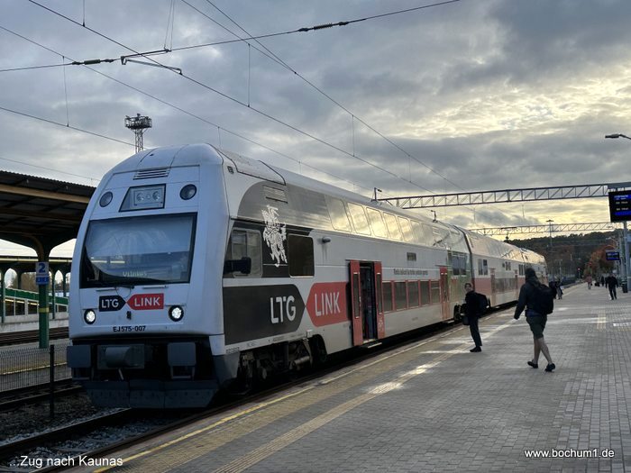 und dann um 13:30 Uhr mit dem Zug nach Kaunas zu fahren. Der Bahnhof