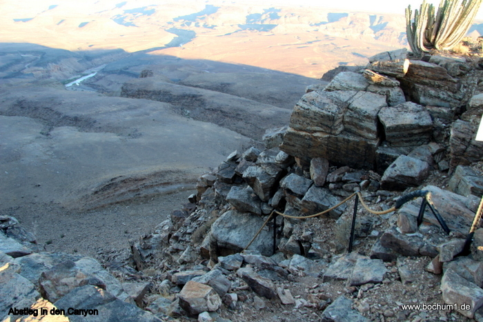 steile Abstieg in den Canyon hinein, der aber wegen der Hitze im