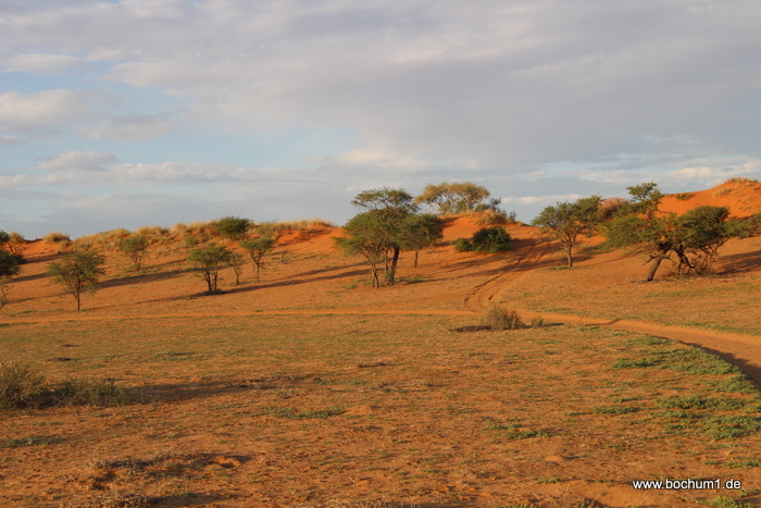 in einer Stunde der Sundowner Drive in der nahen Kalahari Red Dunes