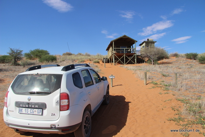 und von dort 5 km südlich zur Red Dunes Lodge. Dort mussten wir 15