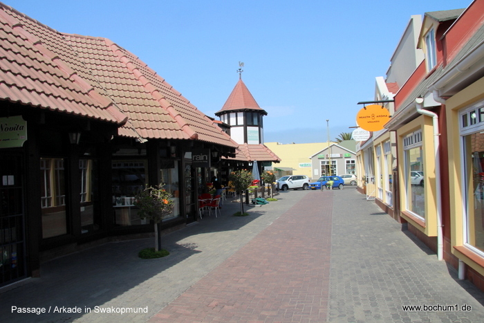 Passage mit den Arkaden, wo wir im Swakopmund Brauhaus einkehren