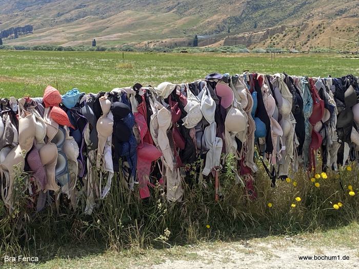 Hingucker der Cardrona Bra Fence, wo ganz sinnbefreit mehrere