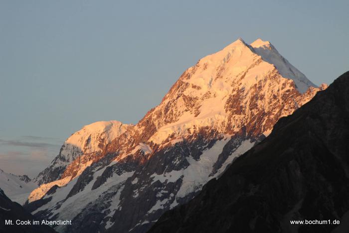 den Mt. Cook zu Abend. Das Buffet war das Beste und vielfältigste,