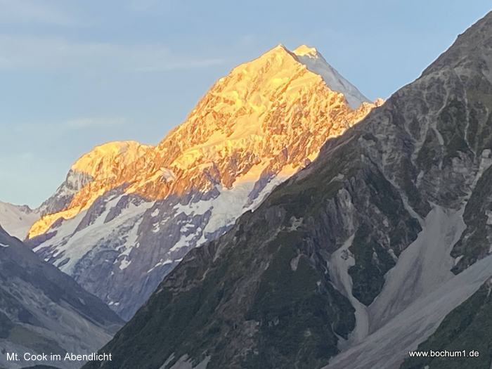 hohen Berg im Abendlicht. Wir hatten mit dem Wetter am Mt. Cook