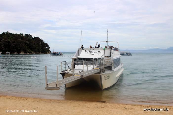 während ein Schiff mit Besuchern aus dem Abel-Tasman-Park anlegte,