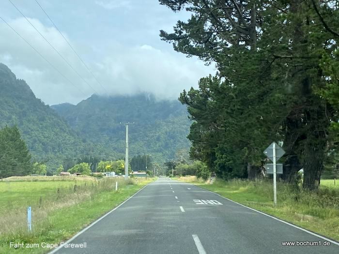 über nicht mehr asphaltierte Straße zum gut besuchten Wharariki