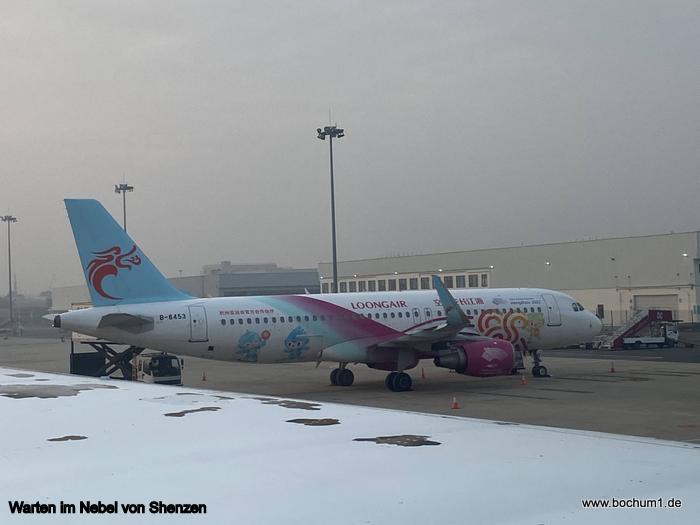 Guangzhou war dichter Nebel, sodass wir letztlich in Shenzen um 6