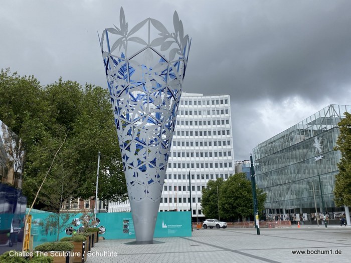 Lediglich Chalice The Sculpture, eine übergroße Schultüte aus Metall