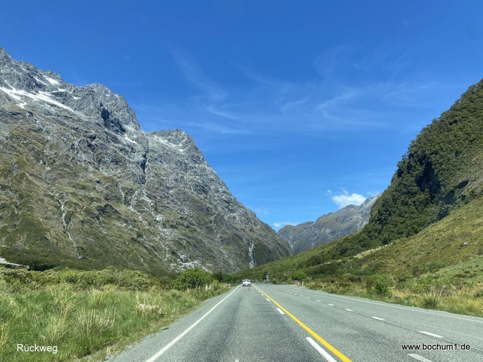 zurück bis Te Anau, woraufhin wir immer mehr aus der Berg-Landschaft