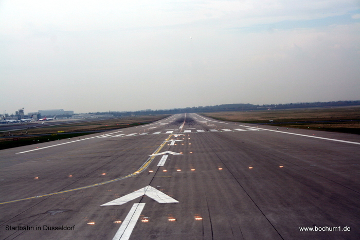 Düsseldorfer Flughafen. Mit dem kostenlosen Transferbus erreichten wir