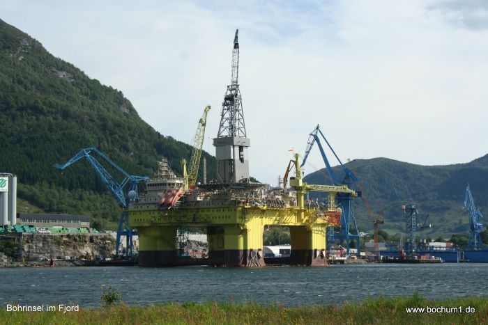 industriell wurde und mitten im Fjord eine im Bau befindliche Öl-Bohrinsel