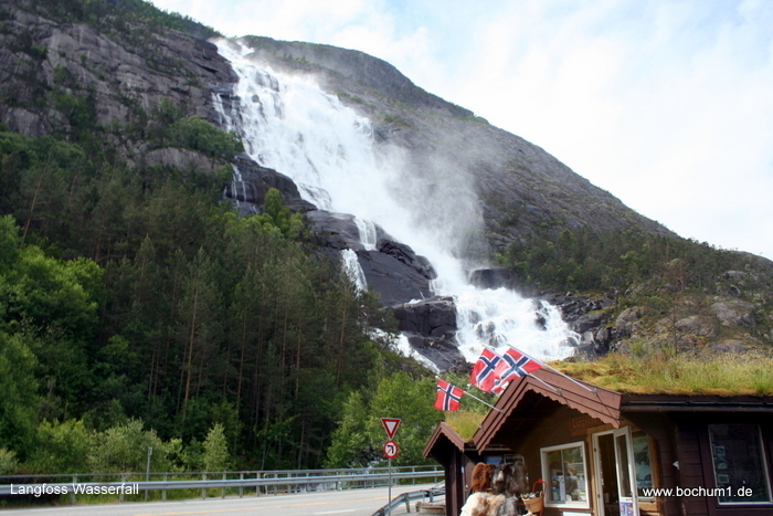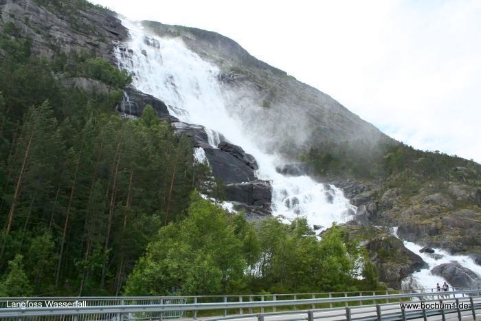 Hardangervidda in die Tiefe stürzte. Der Parkplatz am Wasserfall war
