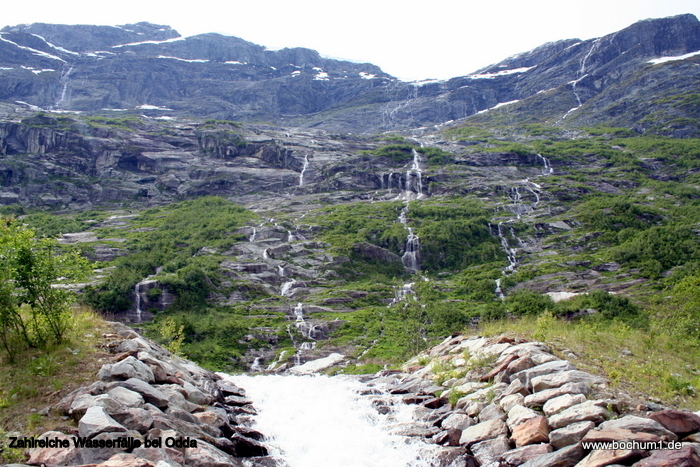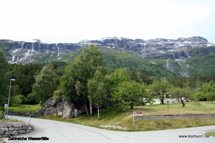 sind viele Wasserfälle zu sehen, welche vom Folgefonna Gletscher