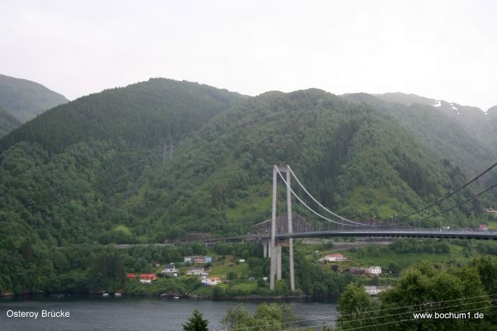 Dann wieder hinunter zum Fjord, über die Osteroy-Brücke (Osterøybrua), mit 595