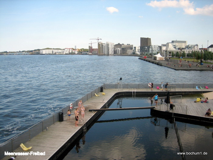 ein kostenloses, gut besuchtes, vom Fjord abgetrenntes Meerwasser-Schwimmbad